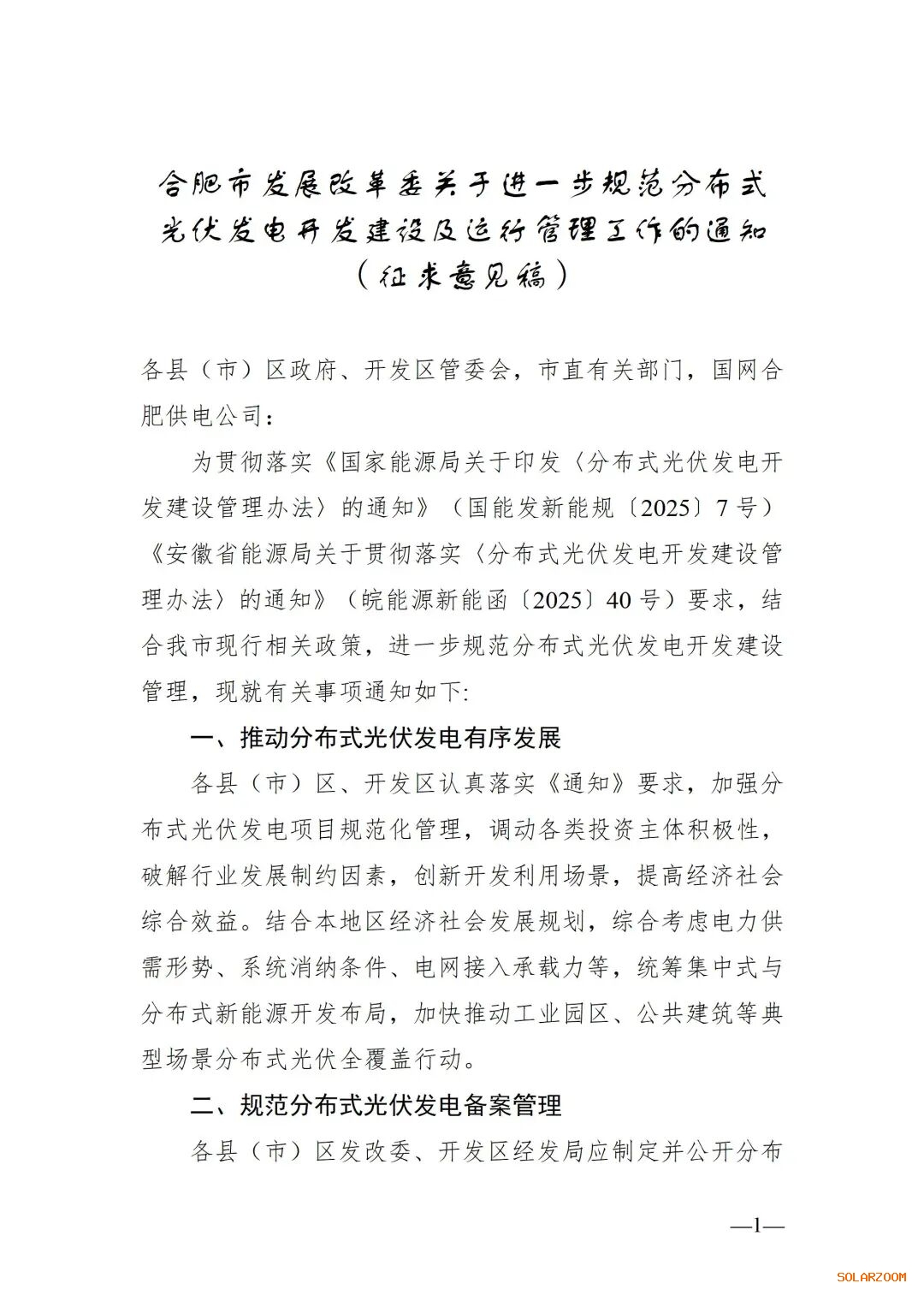 附件:1.合肥市发展改革委关于进一步规范分布式光伏发电开发建设及运行管理工作的通知(征求意见稿).doc