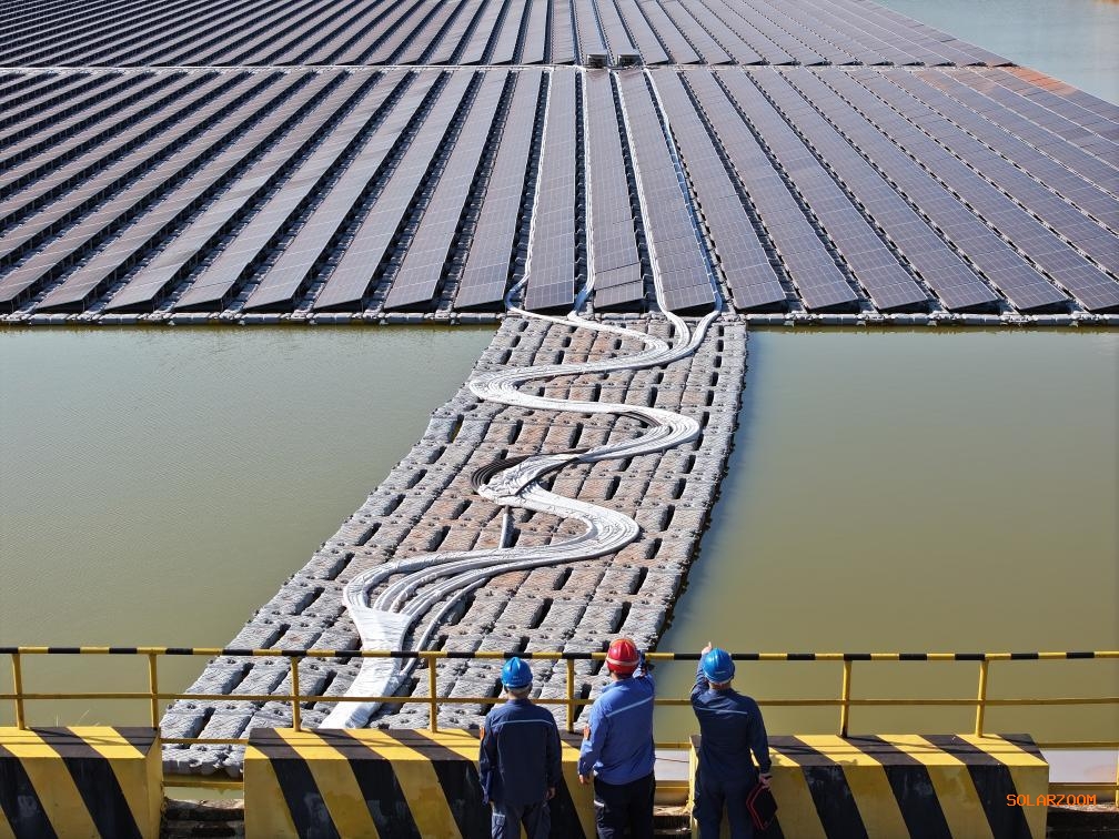 今年9月,广西华昇水上漂浮式光伏电站正式并网发电。该电站总装机容量4.35兆瓦,由26个超大型光伏矩阵组成,建在4.1万平方米赤泥堆场回水池形成的水域上。