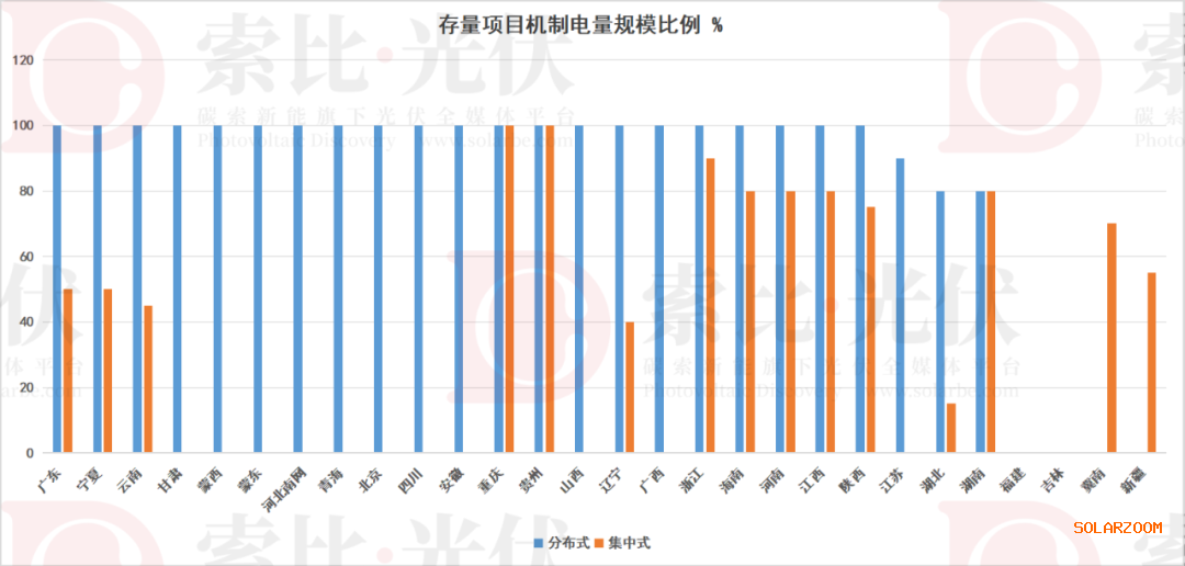 多数省份明确分布式项目机制电量比例为100%,即上网电量全部纳入机制保障范围;仅湖南、湖北两省设定为80%。