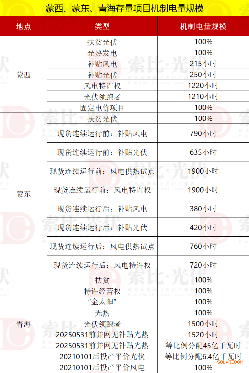蒙西、蒙东、青海以利用是小时数的形式明确存量机制电量的规模。