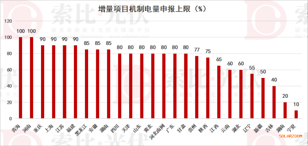单个项目申报上限:多数省份设定在80%~90%(首次申报区间);青海、河南两类项目申报上限为100%,即仅要求申报电量不超过项目实际上网电量即可。