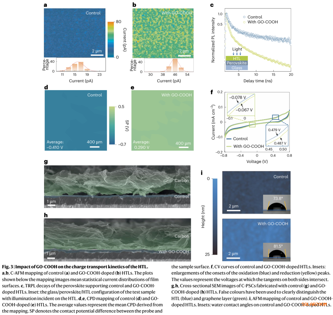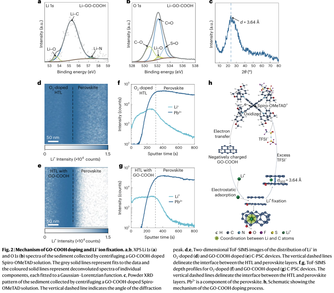 全氟分子SHF实现界面多功能集成:SHF兼具全氟疏水链与羧酸头基,可同时钝化表面缺陷、调控功函数、增强C₆₀层致密性,实现“钝化-能级调控-离子阻挡”三合一界面工程。