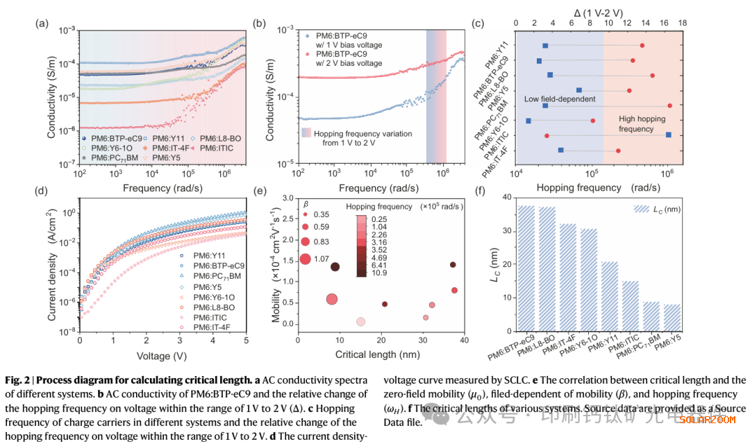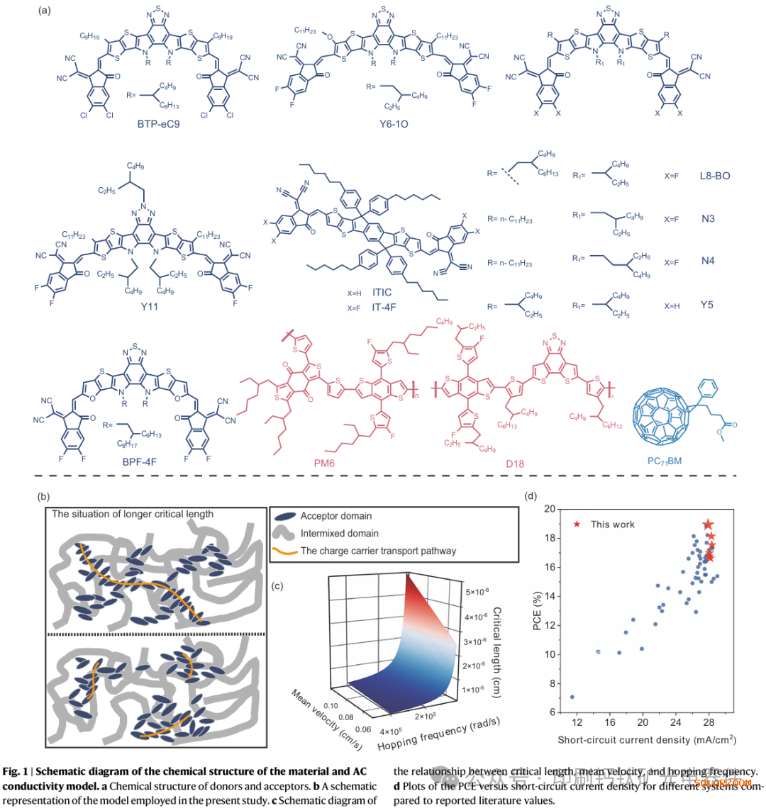 1.提出“临界长度”作为厚膜有机太阳能电池受体的筛选指标,综合考量零场迁移率、跳跃频率与场依赖性,突破传统单一迁移率筛选的局限性。