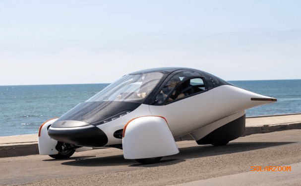 图1:Aptera的三轮太阳能汽车,在完全太阳能充电下可行驶约15至40英里。(来源:Aptera Motors)