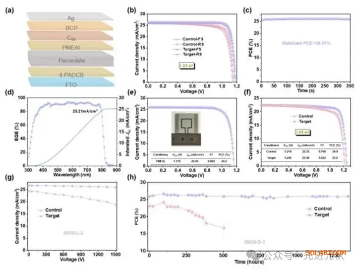 3)赋予了界面层抑制离子迁移的功能。由PMEAI诱导的反向内建电场不仅助力性能提升,还构筑了一道抑制银离子从电极向钙钛矿层迁移的能量壁垒,结合其致密的表面覆盖,显著增强了器件的长期稳定性。