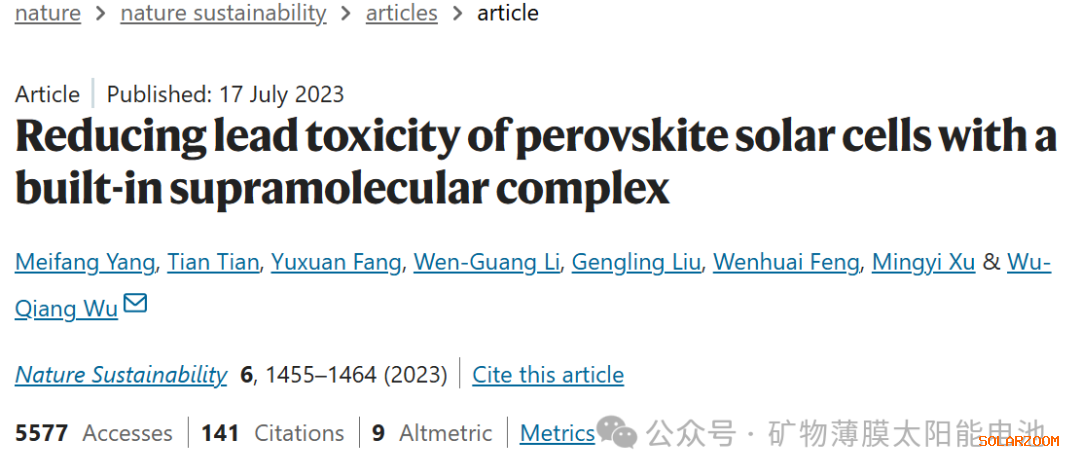 铅泄漏与环境风险:PSCs 破损后(如极端天气、机械冲击)铅离子易泄漏,污染土壤和水源,危害生态与人类健康,现有物理封装或化学吸附策略需额外工艺,且易因吸附饱和失效,还存在二次污染风险;