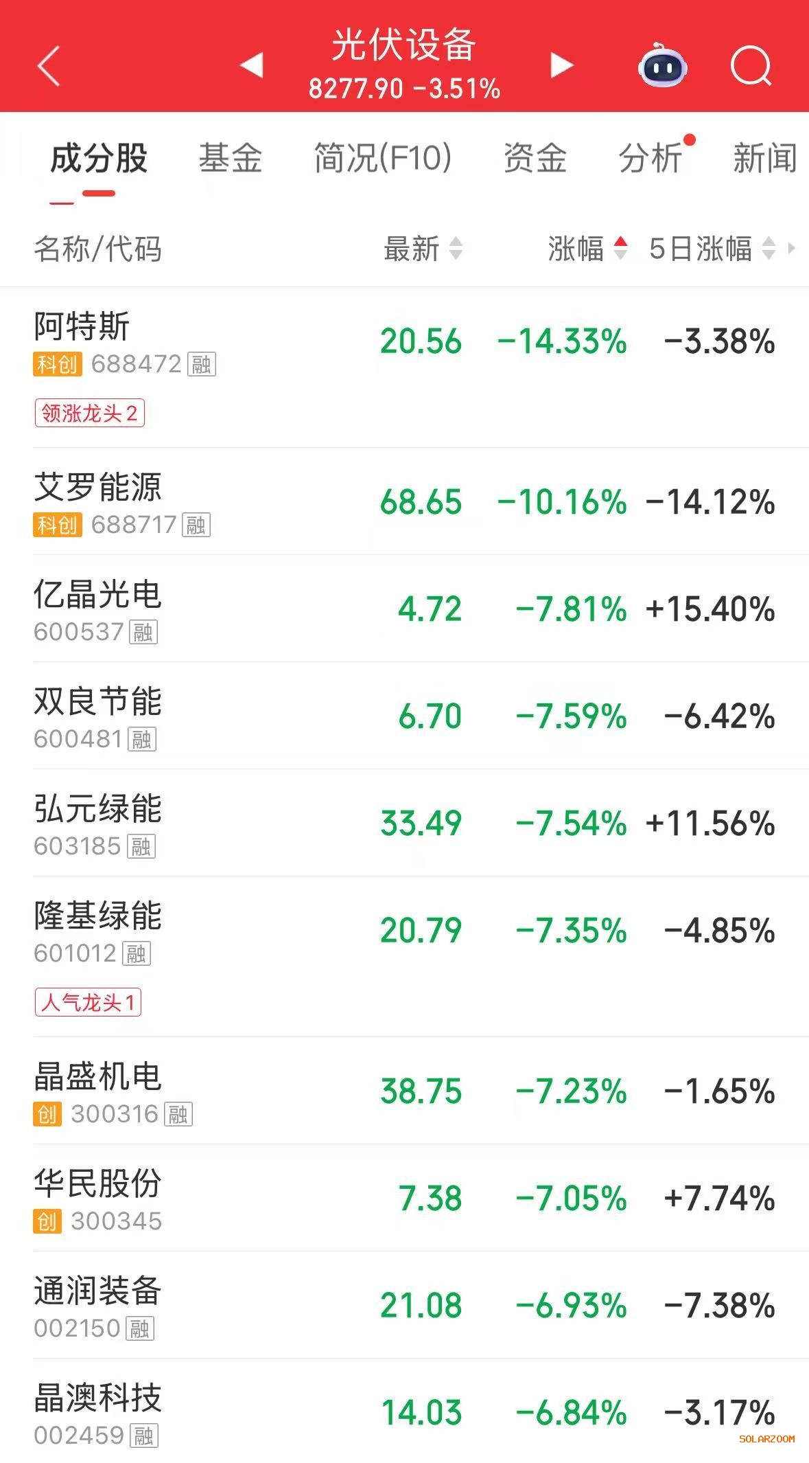 市场方面,11月12日,光伏板块下跌。阿特斯一度跌超17%,光伏ETF一度跌超4%,隆基绿能跌超7%,通威股份、晶澳科技跌超6%。
