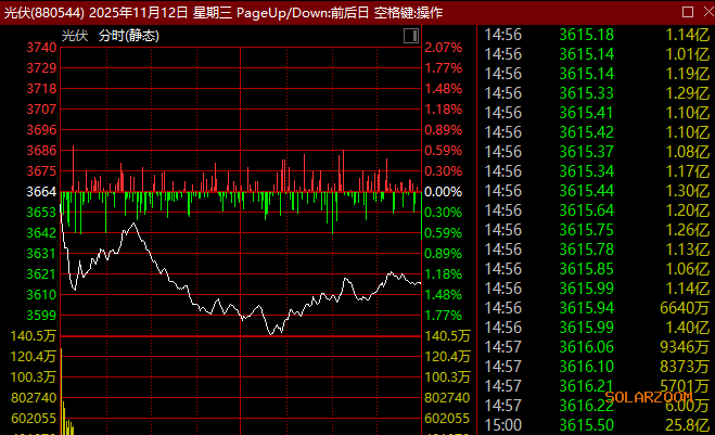 值得注意的是,受消息刺激,11月12日,光伏板块上演集体大跳水。光伏ETF一度跌超5%,通威股份、隆基绿能、晶澳科技等多只龙头股盘中逼近跌停。