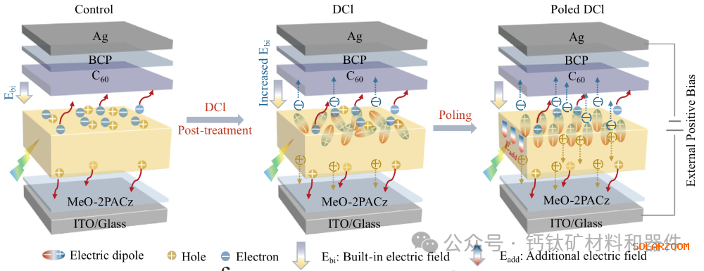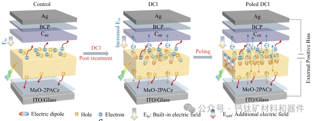 DCl介导的准二维钙钛矿引起的极化原理示意图。图片来自:自然通讯
