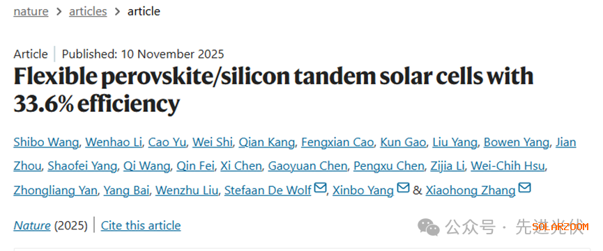 Wang, S., Li, W., Yu, C. et al. Flexible perovskite/silicon tandem solar cells with 33.6% efficiency. Nature (2025).