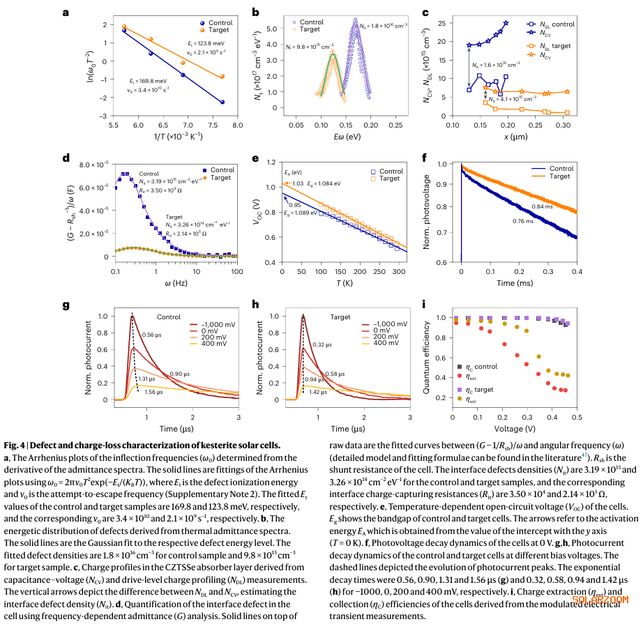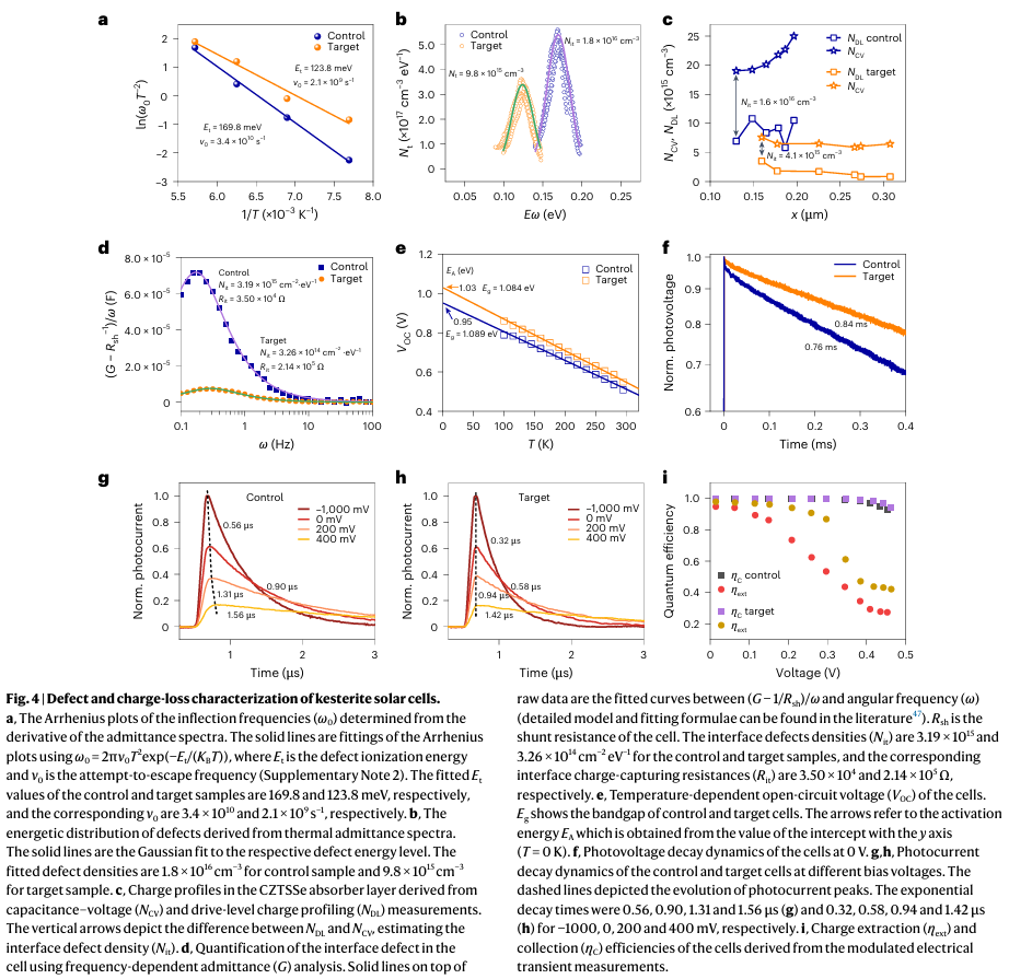 显著抑制缺陷与电荷损失: 该策略使材料表面的Cu-Zn有序度大幅提升。实验证实,优化后器件的体相缺陷密度降低了一半,而界面缺陷密度更是降至原先的十分之一,载流子捕获速率也大幅下降,从而显著提升了器件的开路电压和填充因子。