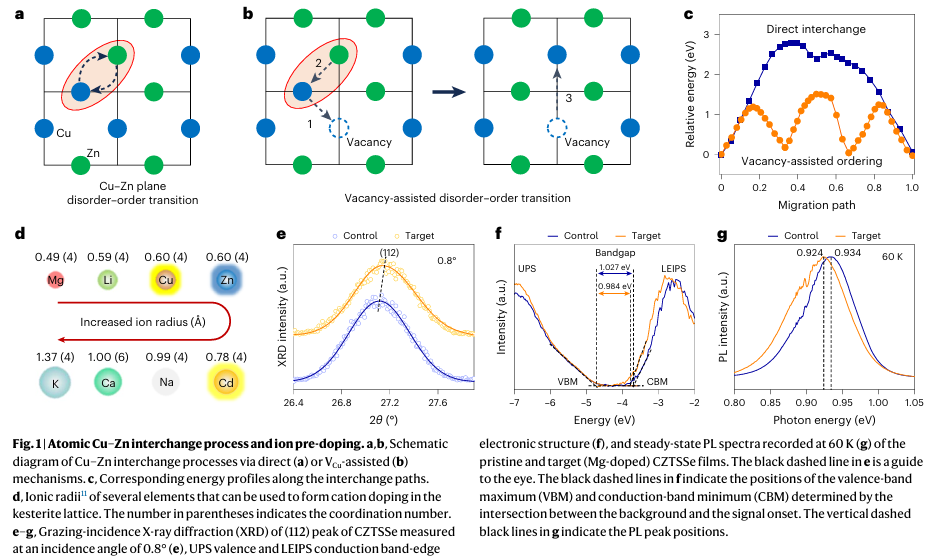 Wang, J., Meng, F., Lou, L. et al. Vacancy-enhanced cation ordering via magnesium doping to enable kesterite solar cells with 14.9% certified efficiency. Nat Energy (2025).