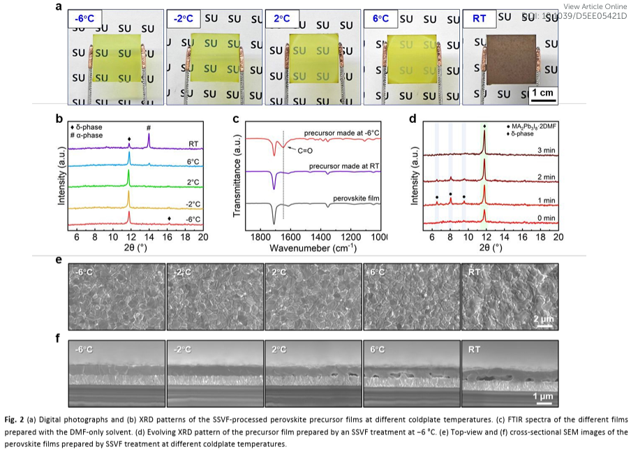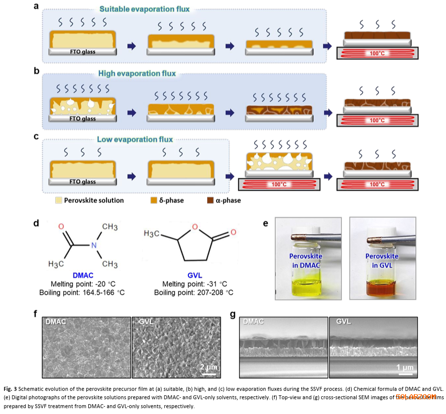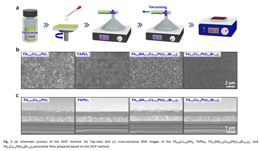首创单溶剂真空闪蒸(SSVF)策略:彻底摆脱传统DMSO/DMF混合溶剂对有毒反溶剂的依赖,通过低温真空环境精确控制溶剂挥发动力学,从物理手段调控结晶路径,实现无界面空隙的高质量钙钛矿薄膜。