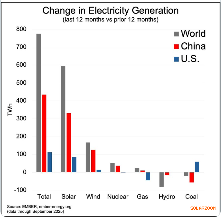 马斯克的这番言论是对一位网友的回应。一位名为Jesse Peltan的网友发布了一张图表,显示太阳能在新增电力增长中占据主导地位,约四分之三的新供应来自太阳能。