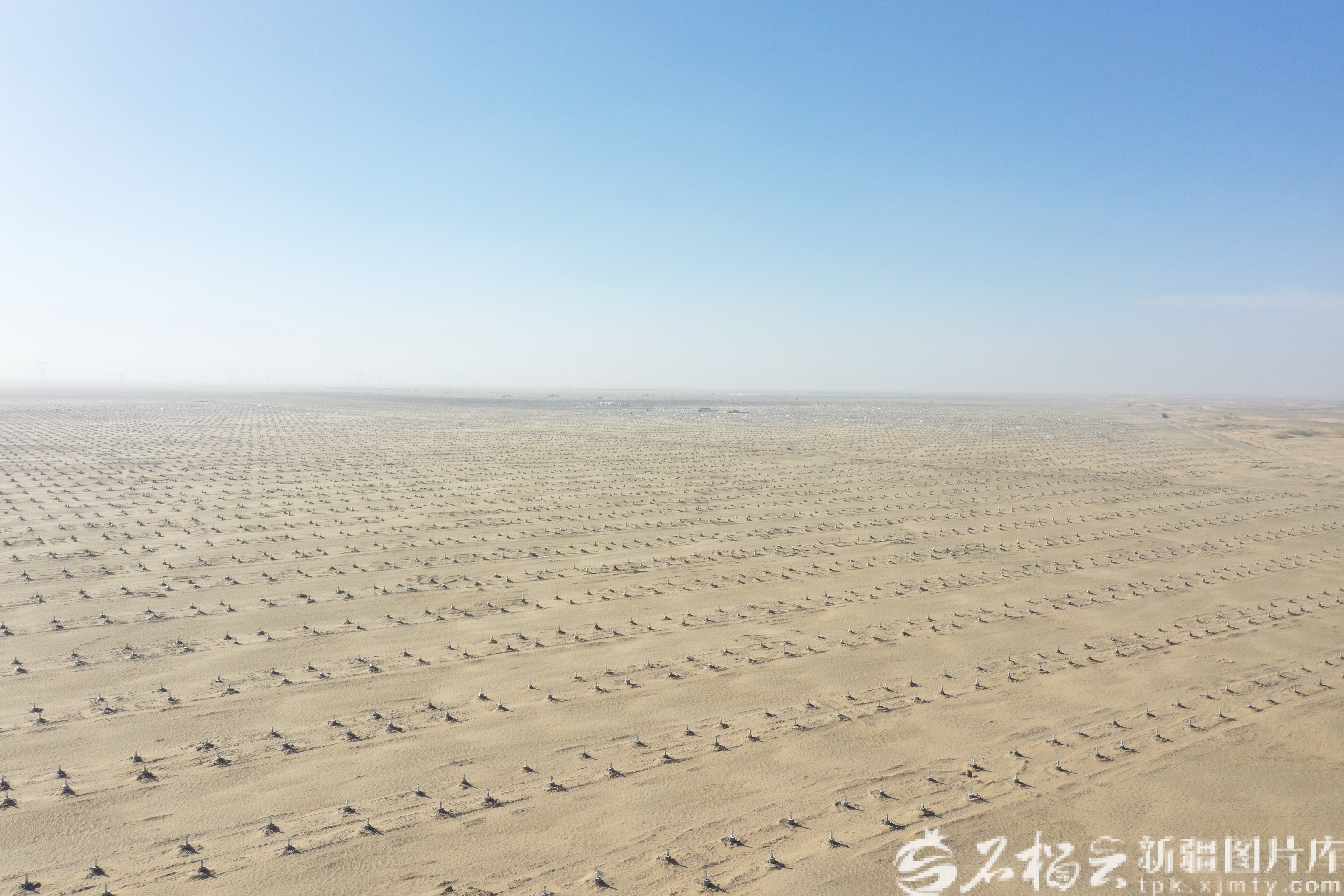 和田民丰100万千瓦光伏治沙项目鸟瞰图。王志文 摄
