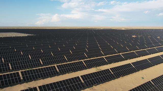 “项目所在地具备得天独厚的地理优势,太阳能资源丰富,预计每年发电总时长可达1600小时,具备较高的开发利用价值。同时,项目场地呈北高南低走势,南北最长20公里,东西最宽5公里,地形较平坦,地势开阔,适合建设大型地面光伏电站。”申能集团旗下申能股份(8.350, 0.06, 0.72%)新疆新能源分公司副总经理曹海昌告诉记者,和丰光伏项目全容量投产后,每年可提供约32亿度清洁电力,节约标准煤约97万吨,减少二氧化碳排放量约200万吨,按一亩树林每天吸收二氧化碳67千克折算,减排能力相当于在戈壁上植造了一片约55平方公里的森林。