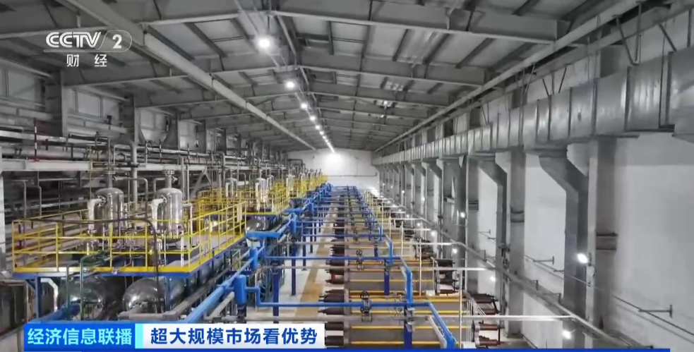 总台央视记者 平凡:在绿氨项目的制氢车间,制氢的关键设备电解槽就像心脏一样,每小时的产氢量达到了1050方,像这样的设备在整个项目达到了64台,这个规模在全世界也是最大的。