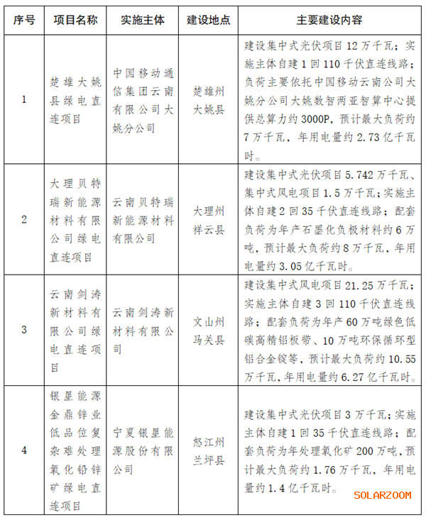 近期,云南省发展和改革委员会、云南省工业和信息化厅、云南省能源局按照《云南省推动绿电直连建设实施方案》(云发改能源〔2025〕577号)文件精神,经组织专家评审、部门研究、社会公示等程序,确定了云南省2025年首批具备实施条件的绿电直连项目4个,分别为楚雄州大姚县绿电直连项目、文山州云南剑涛新材料有限公司绿电直连项目、怒江州银星能源金鼎锌业低品位复杂难处理氧化铅锌矿绿电直连项目、大理州云南贝特瑞新能源材料有限公司一体化项目。
