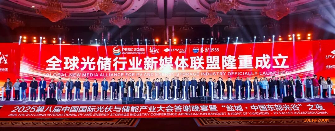 11月19日,2025第八届中国国际光伏与储能产业大会答谢晚宴暨“盐城・中国东部光谷”之夜隆重举行。作为当晚的重磅环节,全球光储行业新媒体联盟成立仪式成功举行,新华社中国财富网副总裁孙亚琼现场发布《全球光储行业新媒体联盟成立倡议书》。近百家权威媒体、行业媒体、财经自媒体现场见证!