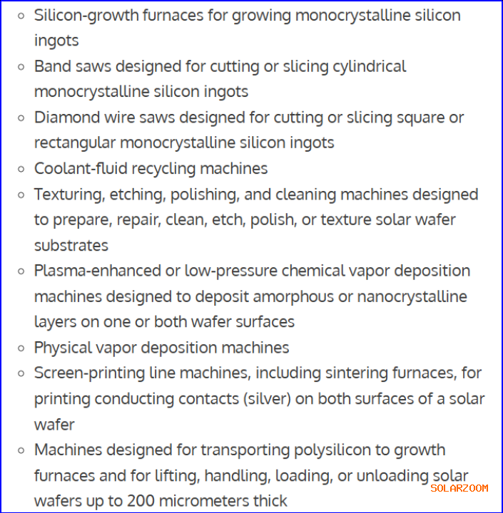 在后端的组件生产环节,丝网印刷产线、烧结炉以及用于搬运超薄硅片的专用机器也获得了豁免。