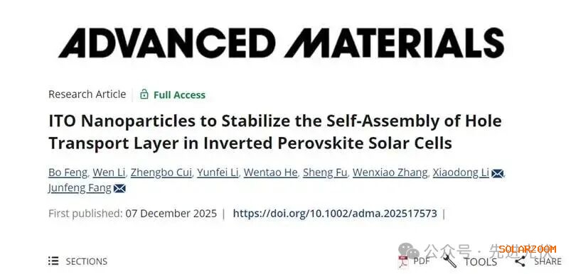 B. Feng, W. Li, Z. Cui, et al. “ ITO Nanoparticles to Stabilize the Self-Assembly of Hole Transport Layer in Inverted Perovskite Solar Cells.” Adv. Mater. (2025): e17573.
