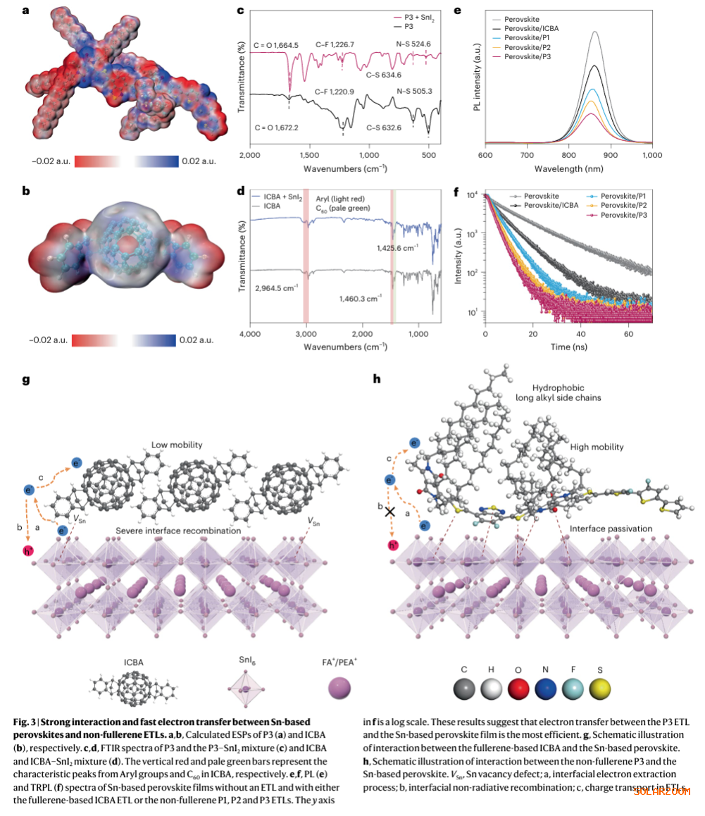 界面相互作用显著增强:P3与锡基钙钛矿之间形成强相互作用和连续共形界面,有效抑制了非辐射复合,提升了电荷提取效率与器件稳定性。