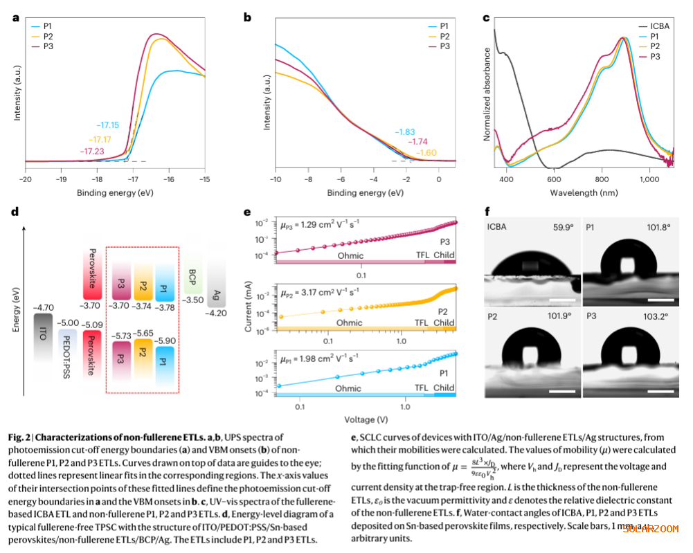 富勒烯基电子传输层(ETL)常用于锡基钙钛矿太阳能电池以实现高功率转换效率,但其存在成本高、合成复杂、电子迁移率低以及与钙钛矿相互作用有限等问题。