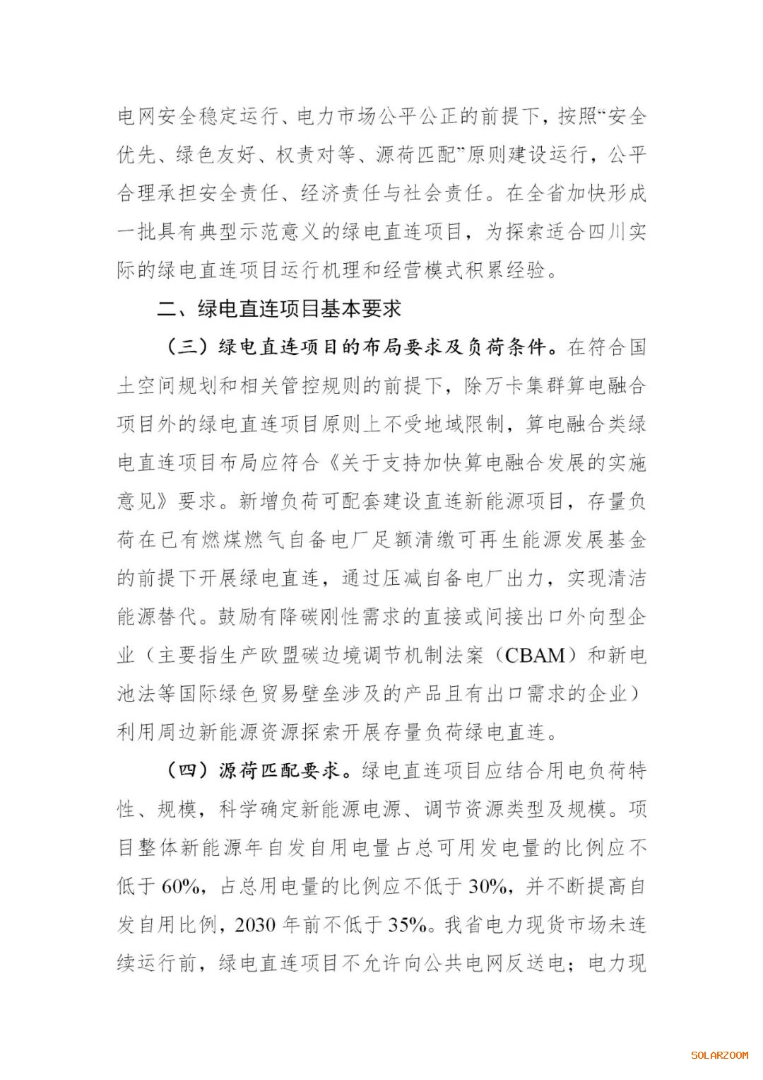 适用范围:在四川省行政区域内开展绿电直连项目相关活动及监督管理,适用本实施细则。绿电直连电源为新增的风电、太阳能发电、生物质发电等新能源,不包括存量已并网的水电、风电、太阳能发电和生物质发电等电源以及已批复的统调统分电源。