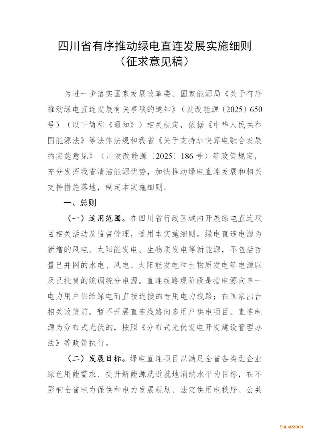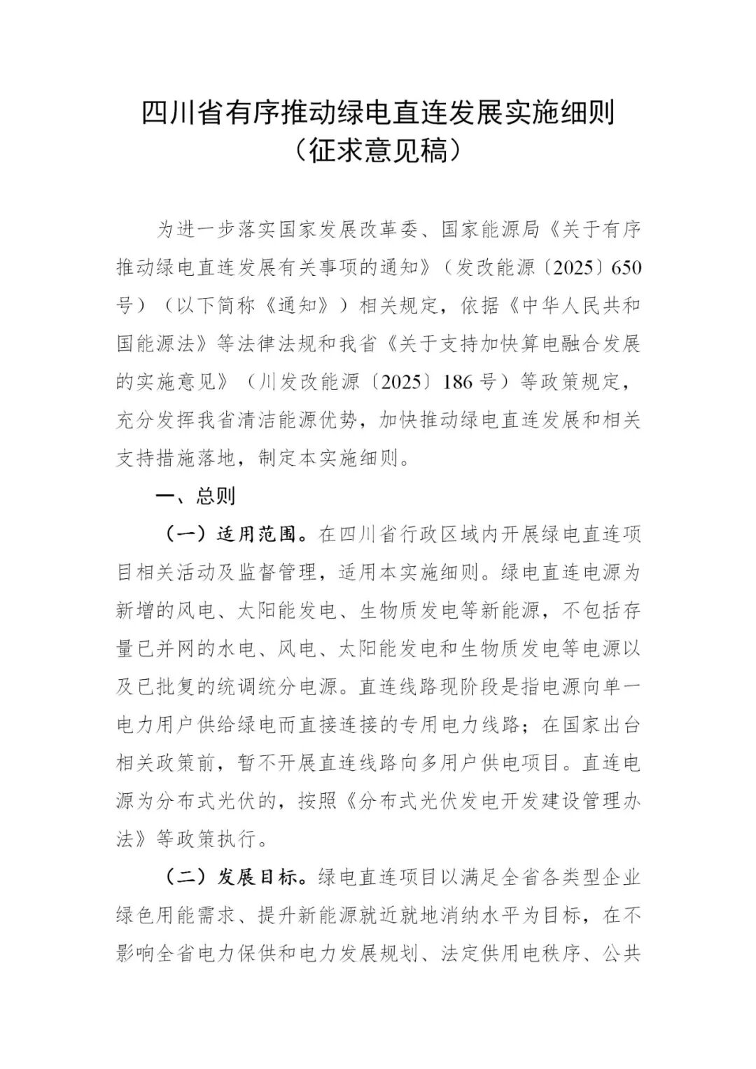 《四川省有序推动绿电直连发展 实施细则(征求意见稿)》公开征求意见