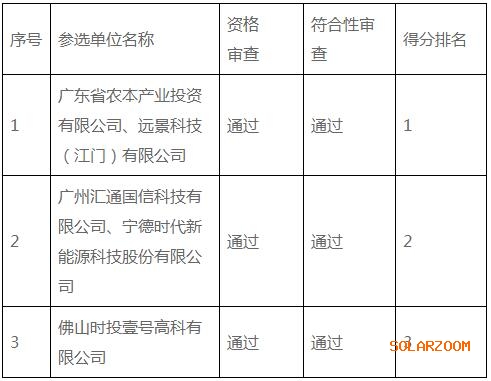12月15日,广东台山市发展和改革局发布台山市发兴站独立储能电站项目竞争配置结果的公告,共有3家进入评审结果,排名第一的是广东省农本产业投资有限公司、远景科技(江门)有限公司、排名第二的是广州汇通国信科技有限公司、宁德时代新能源科技股份有限公司、排名第三的是佛山时投壹号高科有限公司。