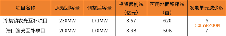 此次三个大型光伏项目被集中调整:荆门钟祥600MW项目、汉川二期500MW项目、汉川三期400MW项目,其装机容量分别被削减50%、52.5%和59.4%,投资额缩减幅度高达49.5%、54.7%和63.8%。