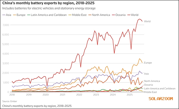 尽管如此,能源智库Ember的数据显示,今年前10个月,中国包括动力电池和储能电池在内的电池出口额达到667.61亿美元,创下历史新高。