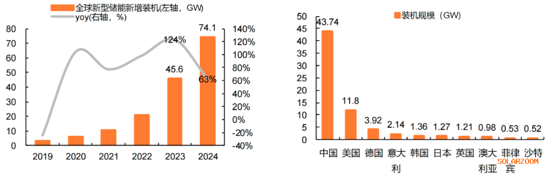 根据CNESA统计,2024年,国内新型储能新增装机规模43.7GW/109.8GWh,同比增长103%/136%,新增装机规模首超百吉瓦时,占据2024年全球新增装机的59%,居全球首位。