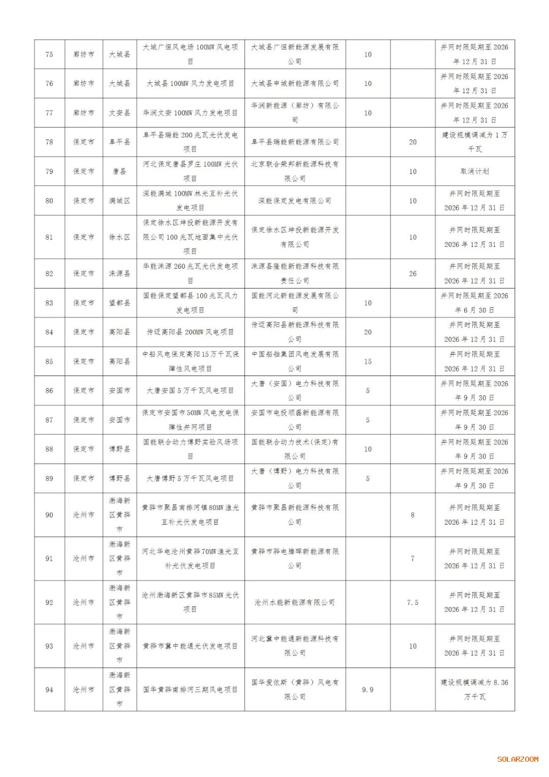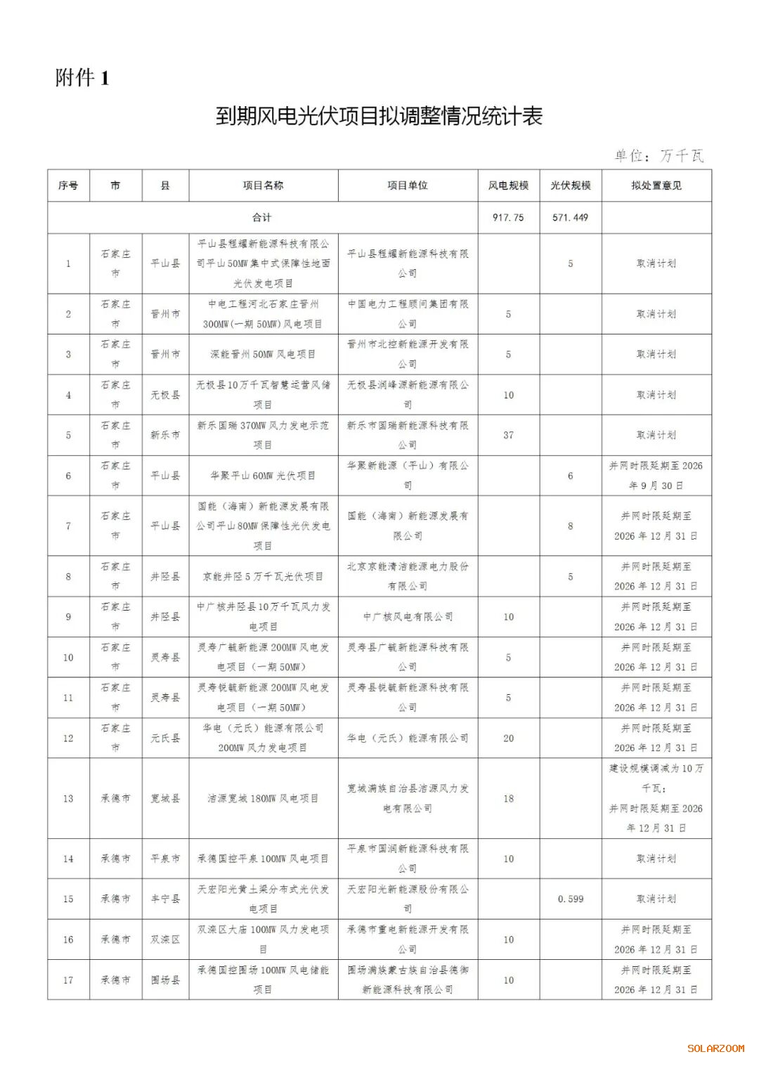 河北省2025年风电、光伏发电项目拟调整情况公示