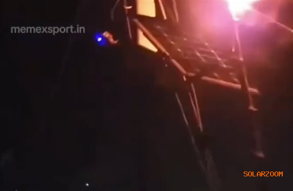 印度比哈尔邦一名男子深夜站在屋顶,左手高举熊熊燃烧的火把,右手调整太阳能板角度,试图给它充电,让人意外的是,连接太阳能板的LED指示灯真的亮了。
