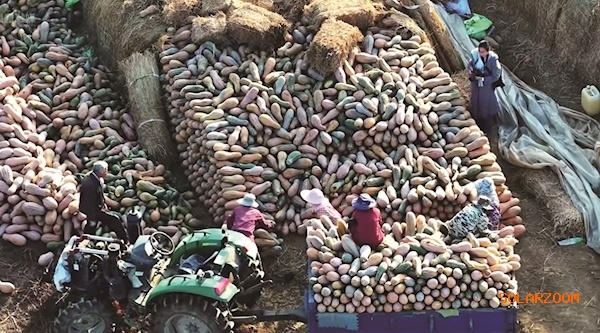 项目也给蔡院村带来了大量就业岗位。村民张大哥一边将一个个大南瓜搬上货车,一边高兴地说,“我们把地租出去,自己还能来这里干活,一天120块钱,日结!现在是丰收季,一个月能干二十多天,比出去打工强!”