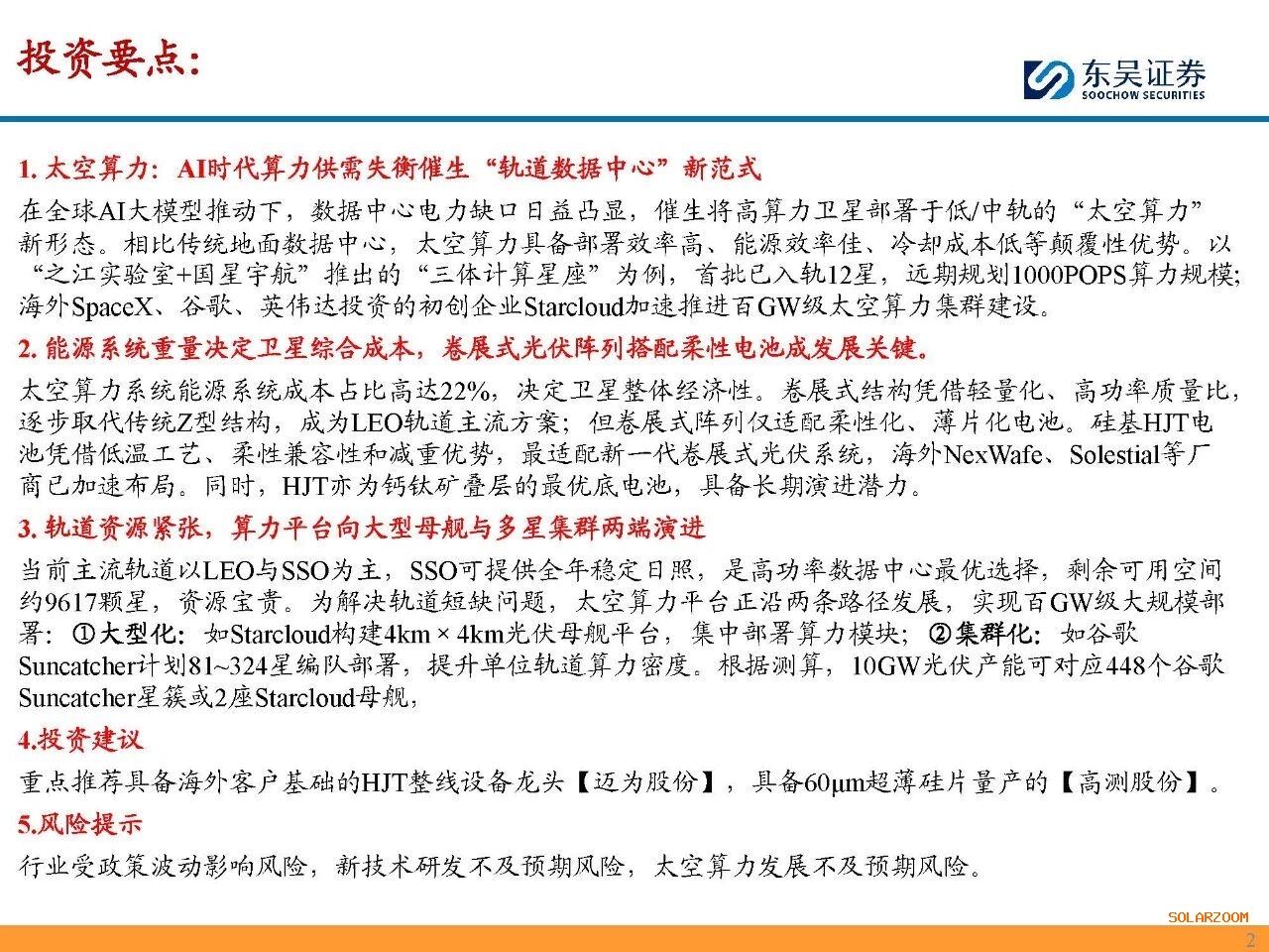 光伏设备行业深度:太空算力中心具备颠覆性优势,HJT或为能源系统最优解