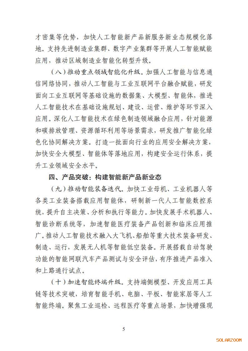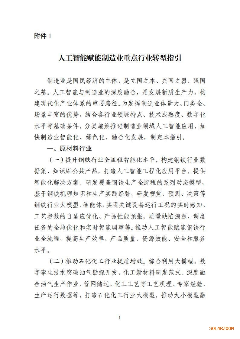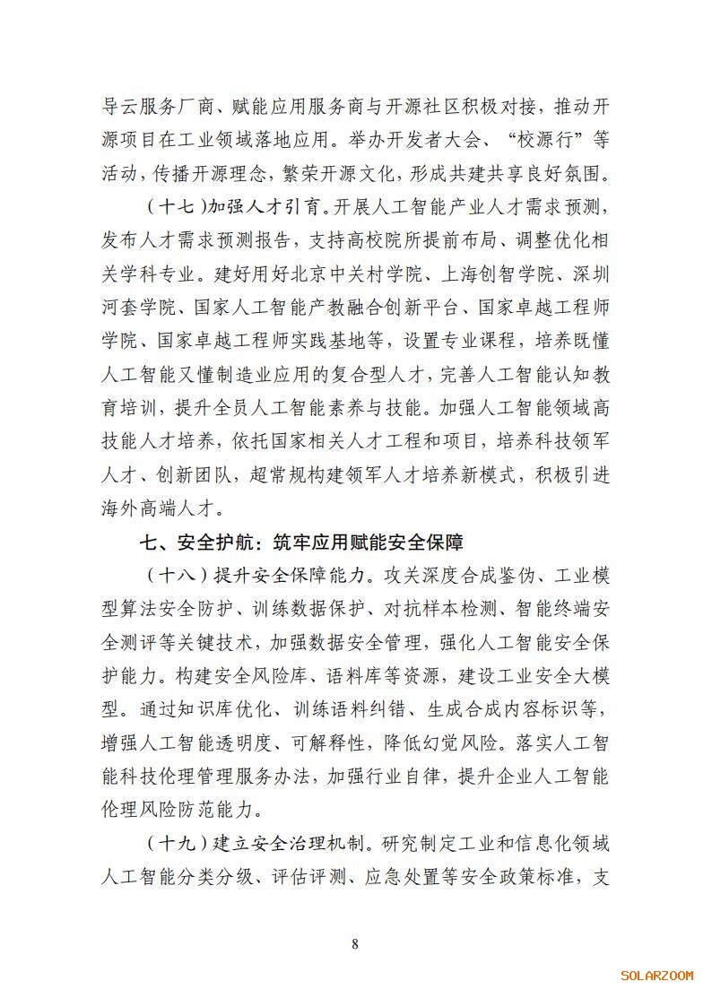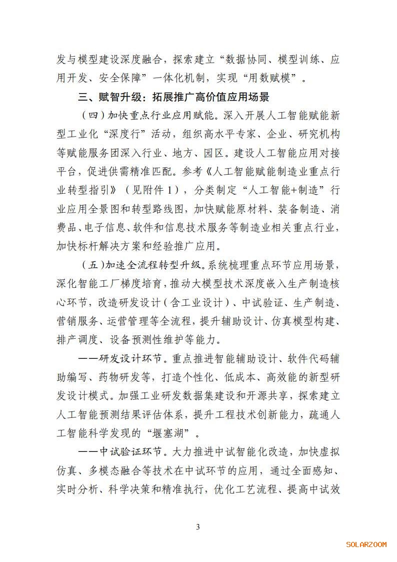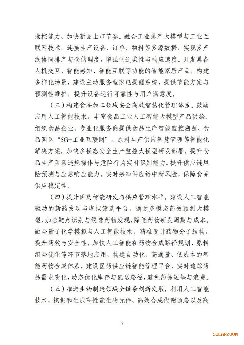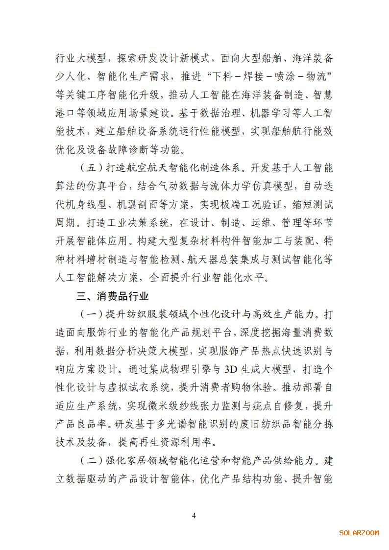 文件指出,深化人工智能技术在绿色制造领域融合应用,针对能源和碳排放管理、资源循环利用等场景需求,研发推广智能化绿色化协同解决方案。打造一批面向行业的应用安全解决方案,加快安全大模型、智能体等落地应用,构建安全运行体系,提升工业领域安全水平。