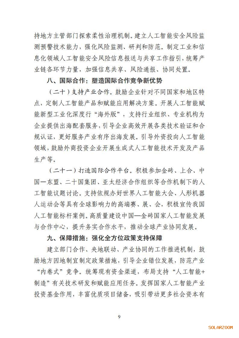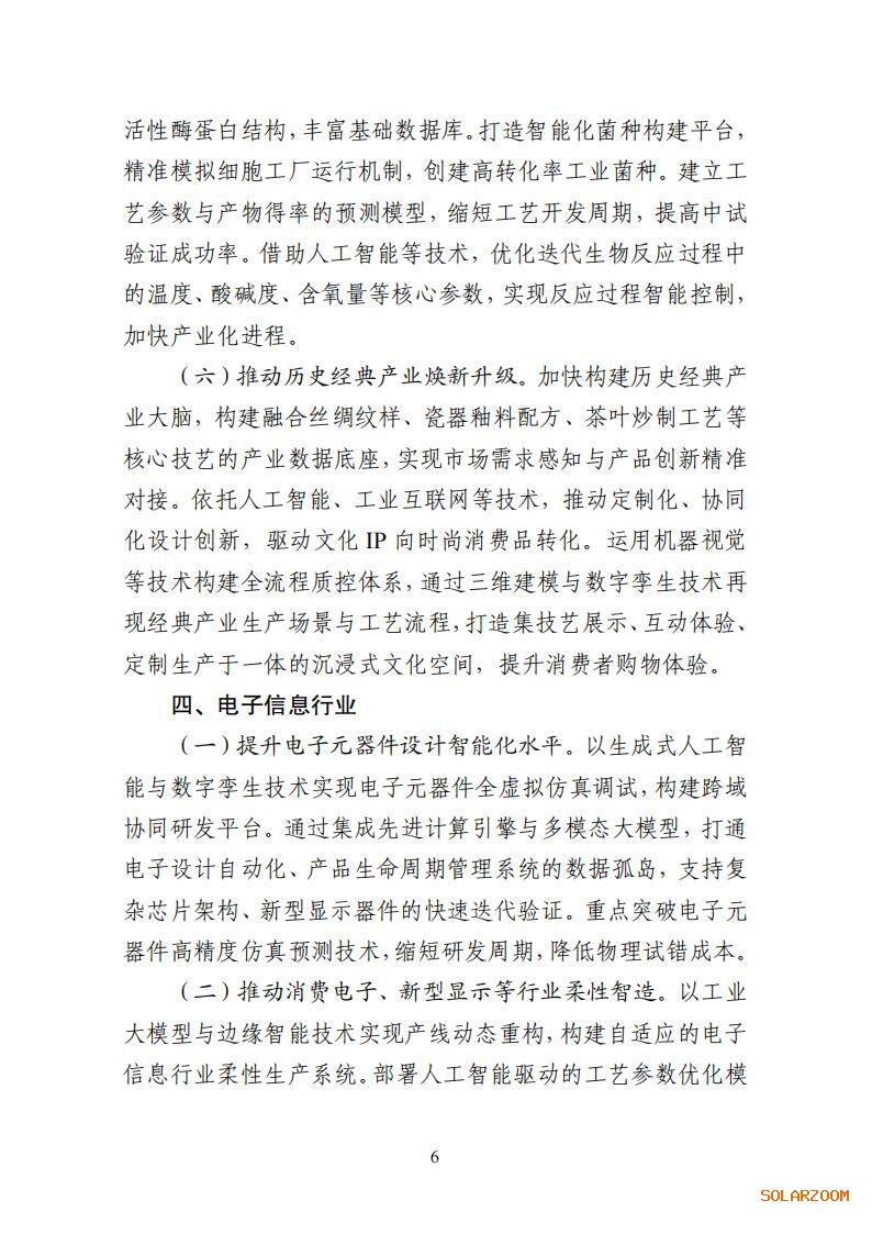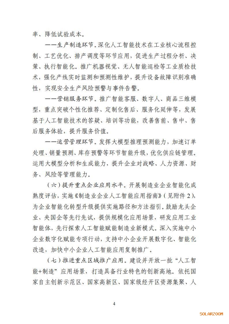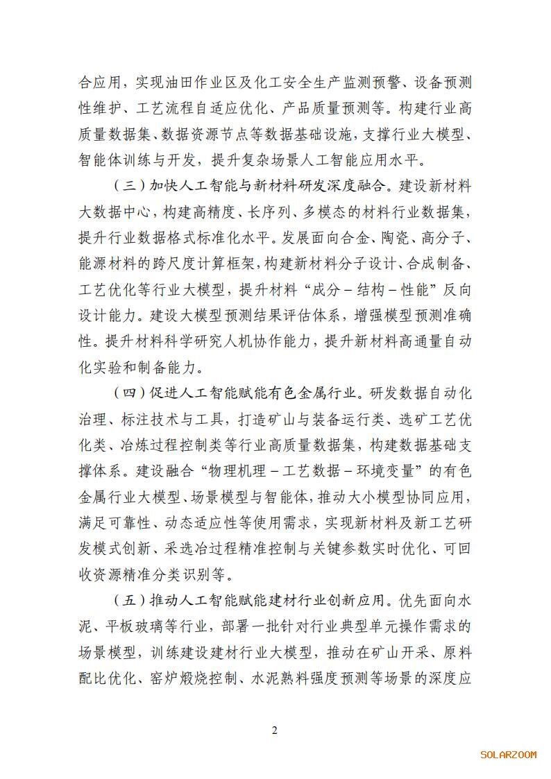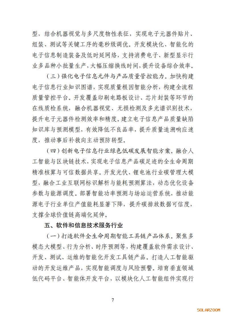 文件指出,深化人工智能技术在绿色制造领域融合应用,针对能源和碳排放管理、资源循环利用等场景需求,研发推广智能化绿色化协同解决方案。打造一批面向行业的应用安全解决方案,加快安全大模型、智能体等落地应用,构建安全运行体系,提升工业领域安全水平。