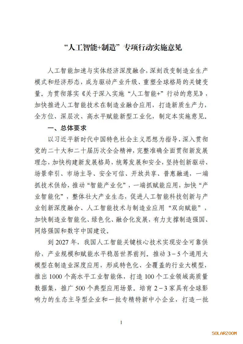 1月7日,工业和信息化部 中央网信办 国家发展改革委 教育部 商务部 国务院国资委 市场监管总局 国家数据局联合发布关于《“人工智能+制造”专项行动实施意见》的通知。