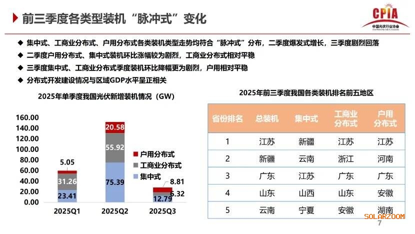 前述王勃华在“2025光伏行业年度大会”上的报告显示,2025年前三季度,工商业分布式光伏装机前五名中,江苏、浙江、广东、安徽,悉数在列。
