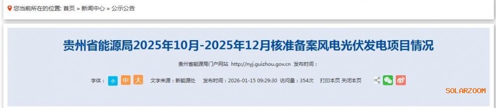 贵州省能源局2025年10月-2025年12月核准备案风电光伏发电项目情况