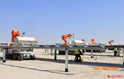 机器人在PV3项目上安装光伏板。人民网记者 管克江摄