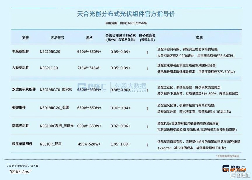 1月13日,天合光能(18.970. -0.10. -0.52%)通过官微公告分布式市场指导价,多个产品型号都出现集体涨价,其中分布式光伏组件官方指导价为0.85-0.89+元/W。