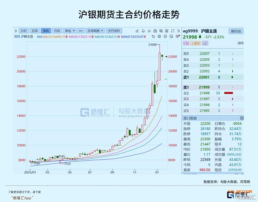 2025年以来,上海黄金交易所现货白银价格从年初的7600元/千克,一路飙升至年末的23688元/千克,年内涨幅超150%。