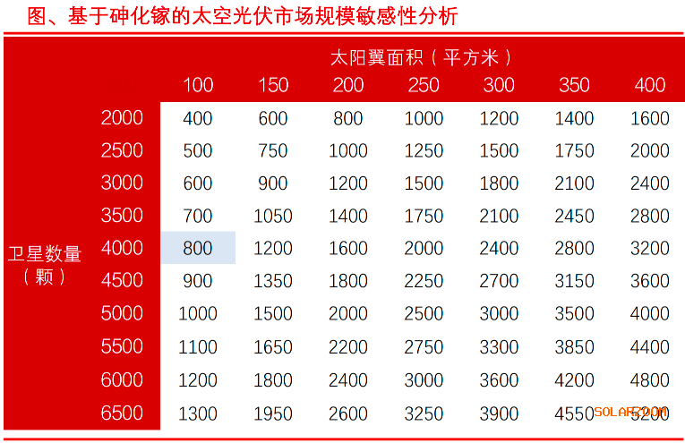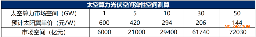 兴业证券研究院同样表示,基于砷化镓外延片约20万元/平方米的市场价格测算,若发射4000颗卫星且单星太阳翼平均面积达100㎡,对应的太空光伏市场规模约为800亿元;若未来能达到每年100GW的数据中心部署,则市场空间有望达数千亿规模甚至万亿级别。