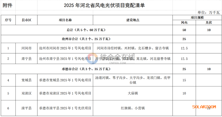 附件:2025年河北省风电光伏项目竞配清单