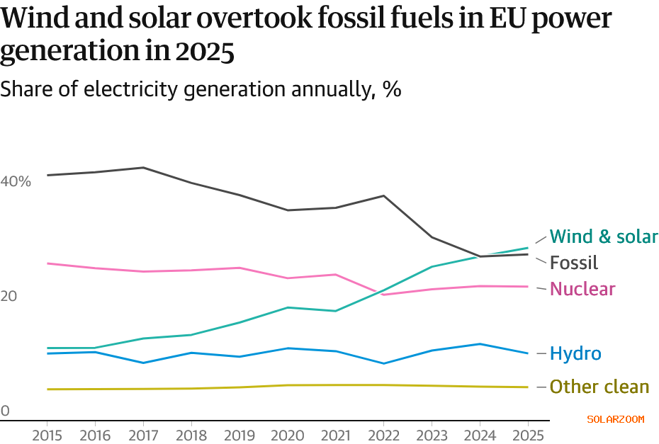 能源与清洁空气研究中心的分析师佩特拉斯·卡蒂纳斯表示,Energy太阳能和风能正“成为欧洲电力系统的支柱”,他并未参与该报告。