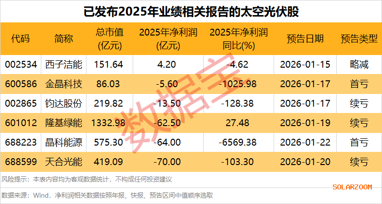 截至1月22日,6家上市公司已发布2025年业绩相关报告。其中,西子洁能预计实现盈利,隆基绿能预计有所减亏。
