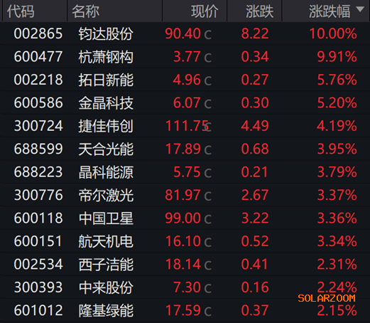 太空光伏指数今日大涨